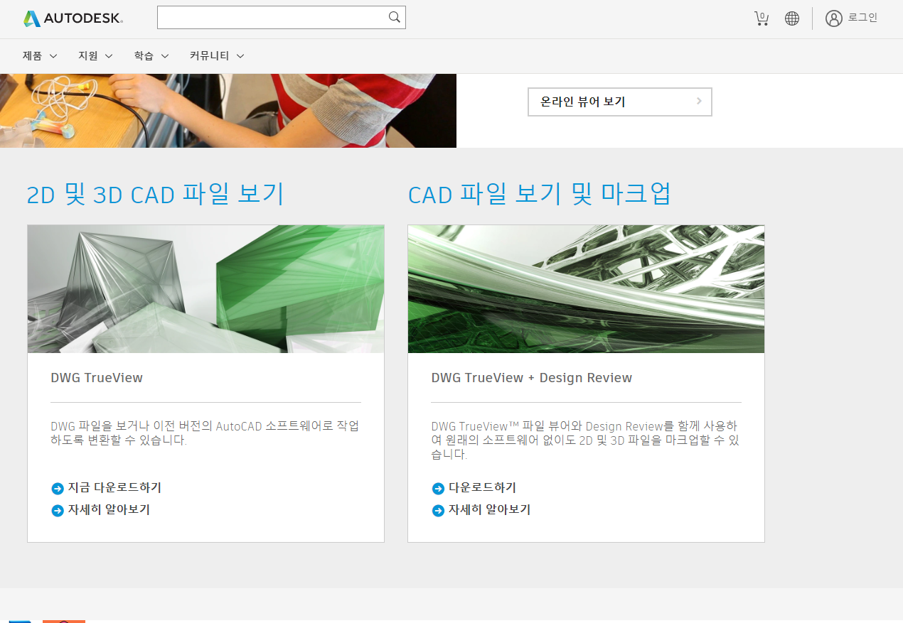 조금 내리면 2D 및 3D CAD 파일보기란 목록이 있습니다